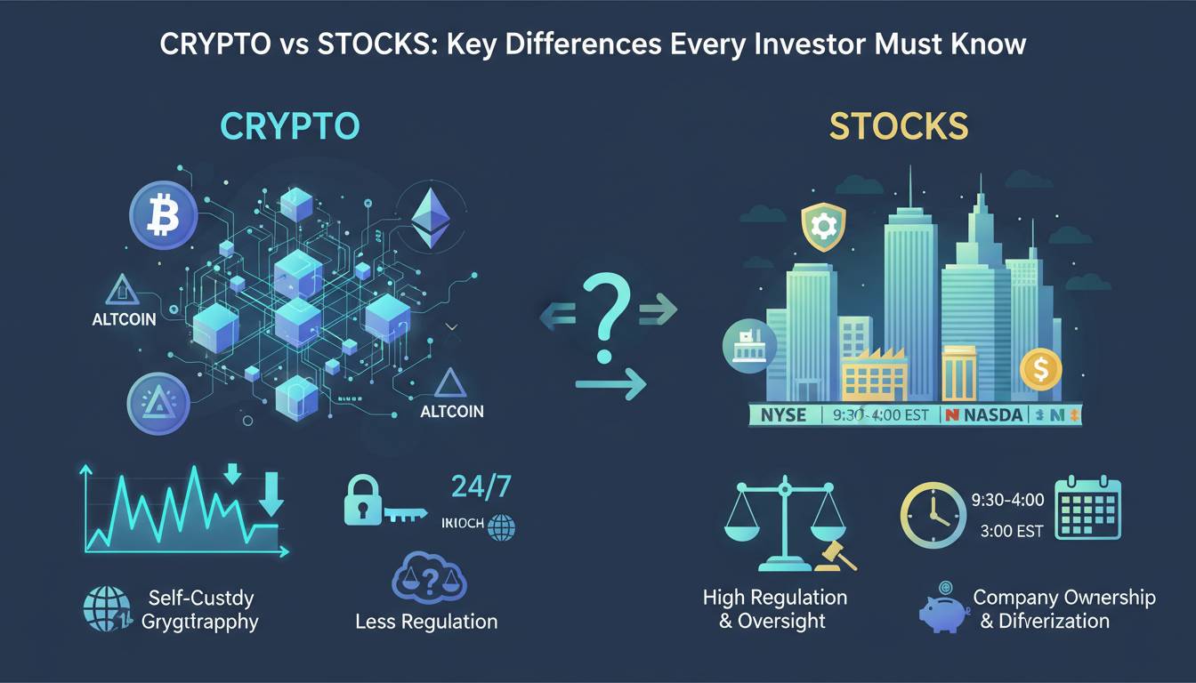 This guide examines every meaningful distinction between these asset classes, from volatility profiles and regulatory treatment to practical trading considerations and long-term wealth-building potential.